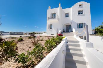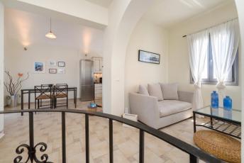 A bright and charming fully furnished villa of 111 sq.m with views of the whole caldera and volcano, that can accommodate up to 7 people, is ideal for families and friends who long for privacy and finesse.
